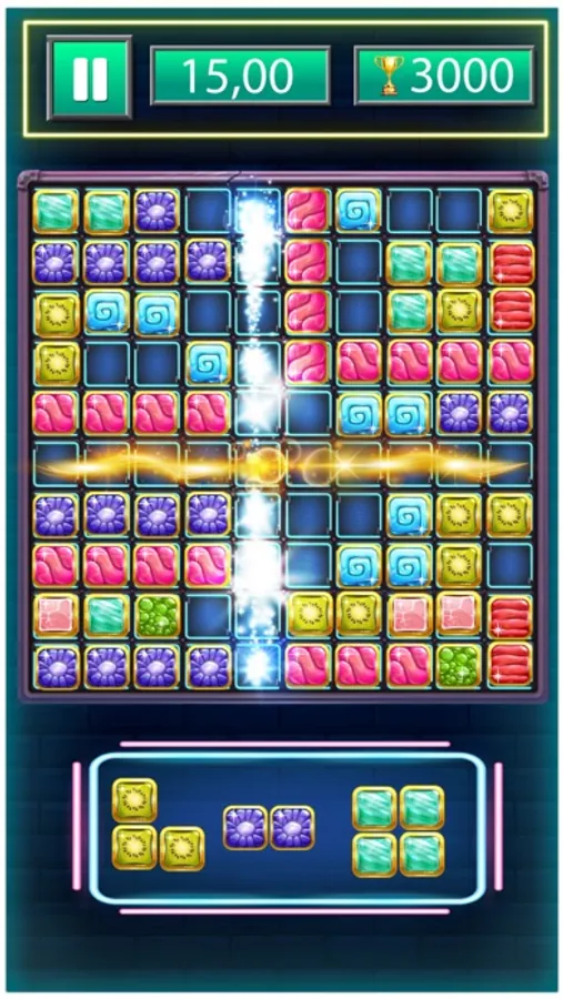 → Complete a Line in the grid with colorful glowing jewels and gems blocks either horizontally or vertically and have amazing jewel blast