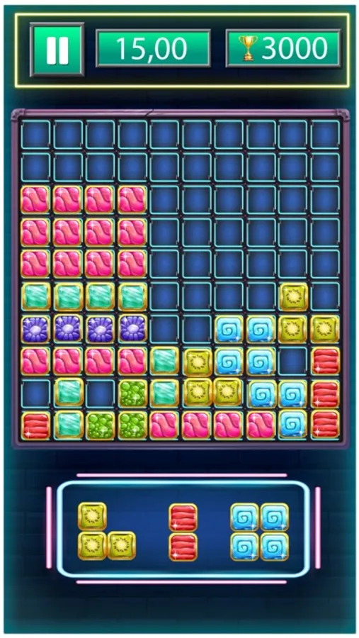 →Drag the available blocks one by one at the proper position to complete a line vertically or horizontally