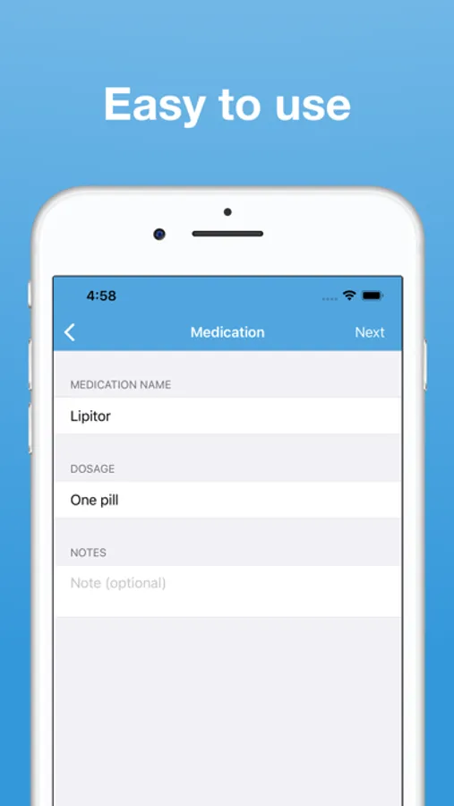 Pill Tracker will help you remember to take all your medications on time. Simply input the medication name, dosage, an optional note and frequency. The app can optionally send you a notification to remind you to take your medication.