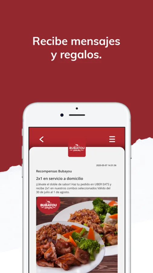 Con nuestro programa de lealtad obtienes puntos por cada compra que realices en nuestro restaurante y que podrás utilizar para canjear recompensas increíbles, además de consultar tu estado de cuenta, puntos y recompensas disponibles, información acerca de cada sucursal, y recibir regalos y mensajes especiales.