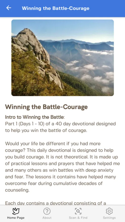 Would your life be different if you had more courage? This 40-day Biblical devotional is designed to help you build courage. It is not theoretical. It is made up of practical lessons and prayers that have helped me and many others win battles with deep anxiety and fear.