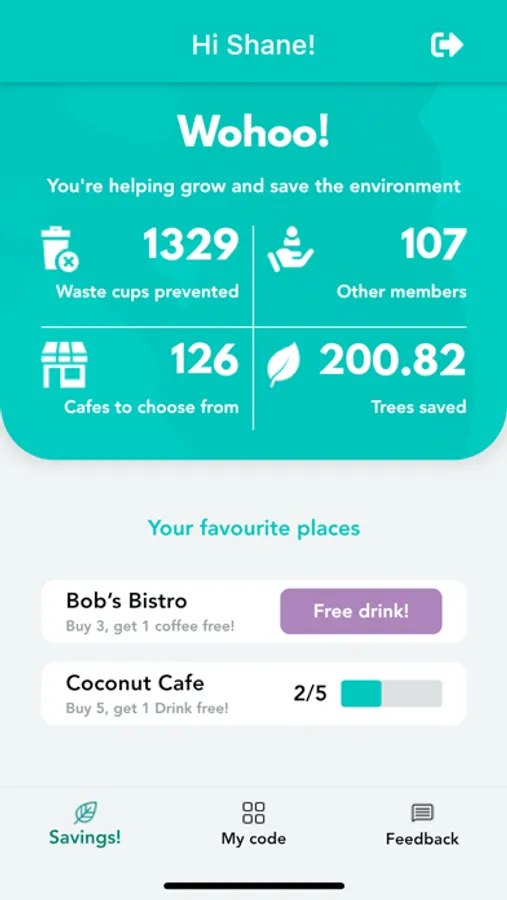 Welcome to the CUPforLIFE mobile application that connects people who use a reusable cup. The fact that you’re here now means you’re a STAR & a HERO! Simply obtain a unique QR Code for free from the participating café you frequent. The cafés will be recognisable by the CUPforLIFE logo of the green cup with a leaf and a frog on it. Scan your QR Code to your mobile device to activate the app. Attach the physical QR Code sticker to your reusable cup. Where you attach the QR Code needs to be very clean to ensure it doesn’t become easily dislodged. It is dishwasher and microwave safe and when you activate your account you are ready to scan either the digital or physical QR Code at your café. This will allow you to quickly and easily update your loyalty rewards on your phone to ensure you never miss another loyalty reward from a lost card. The app will allow you to give feedback to help cafés help you further. CUPforLIFE will also connect consumers to cafés and each other through the maps component and the social media portals (future functions). With the entire combined community purchasing history being visible in the statistics on your app, you will see how many trees we have been able to save through the purchase of coffee in your reusable cup, and by not using a single use disposable cup. We aim to make CUPforLIFE so much more than just a connected rewards card, but this early version is to seek your input to help us achieve the vision and save wasting resources needlessly.