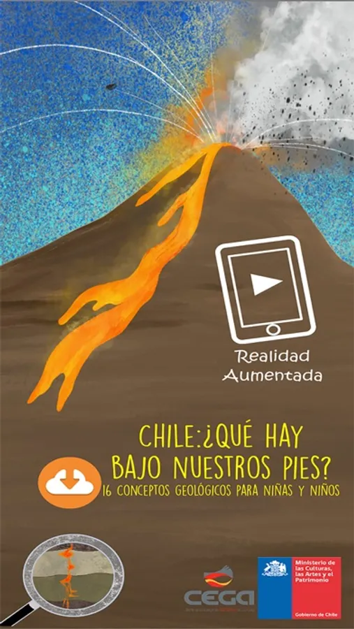 10 Imágenes en realidad aumentada del libro Chile: ¿Qué hay bajo nuestros pies? 16 Conceptos geológicos para niñas y niños. Capas de la Tierra, tectónica de placas, amenazas volcánicas como lahar, lava, caída y flujo piroclástico y bombas, y un reservorio geotermal son las imágenes en tres dimensiones que se encuentran en esta app. Estas imágenes se construyeron sobre modelos comúnmente ocupados en libros de ciencia, pero adaptados a comentarios de niñas y niños.