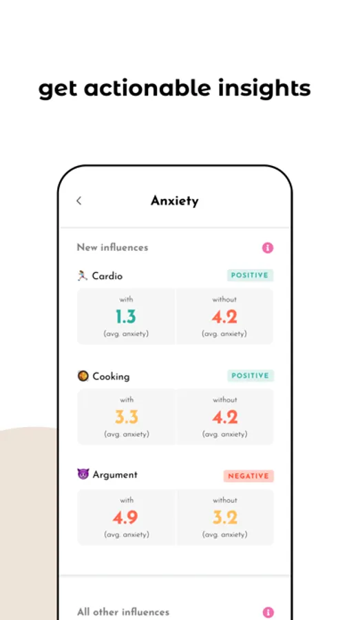 Understand positive and negative influences, such as activities, foods, exercise, and social interactions. This is key for someone who may be anxious, struggling with panic attacks, or wants to understand their triggers.