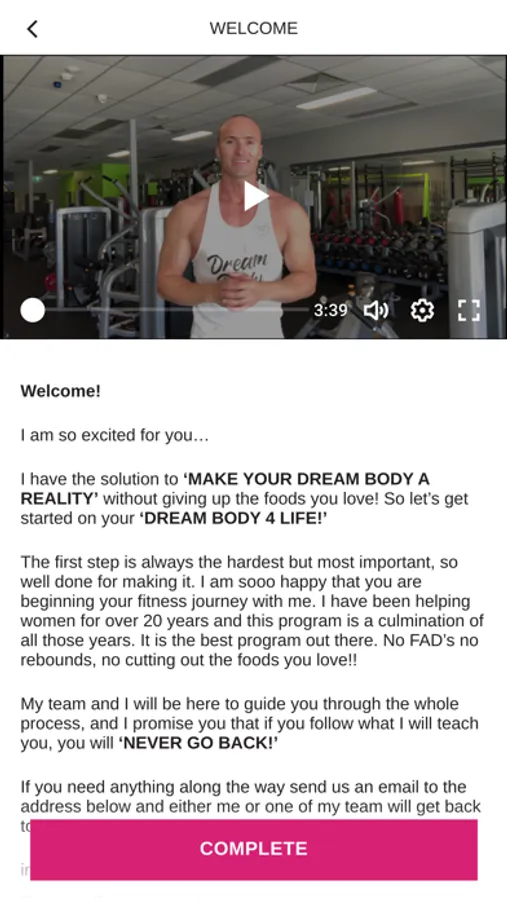 • Dream Body - Try out my easy-to-follow body conditioning workouts! This can be trialed at home or in a gym. This is to get e feel for the interactive style of the app, and a feel for the workout designs.