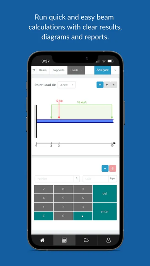 The beam calculator is a fast and easy-to-use 2D analysis tool where you can quickly calculate the reactions, bending moment diagrams, shear force diagrams, deflection and stresses on your beam. Run calculations on a variety of shapes and materials such as wood, concrete or steel beams.