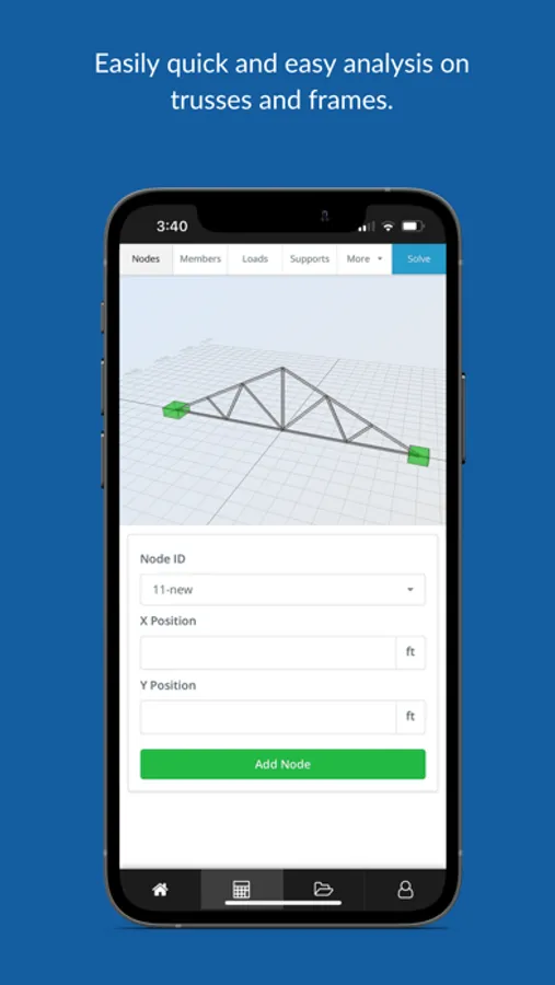 Build 3D models with SkyCiv Mobile Frame from scratch or load, edit and view pre-existing models you’ve been working on in Structural 3D and make changes in real time. Mobile Frame supports the same features as S3D including the ability to add, Nodes, Members, Loads, Supports and Plates. Users can also perform structural analysis on the go and receive both a simplified as well as a detailed report summary regarding their results.