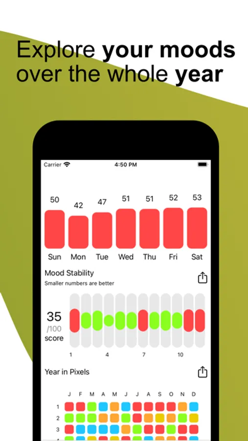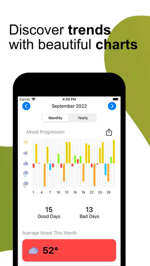Your data is your own! Your mood data is stored on your device to make sure that no one can snoop on your moods. iCloud sync is also available to securely synchronize your data between all of your devices.