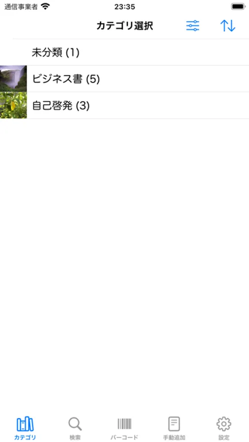 (1)画面の「カテゴリ」タブをタップして、編集したい書籍情報に登録したカテゴリをタップします。