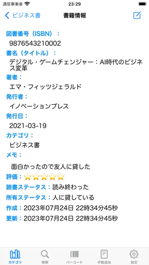 これは自分の本棚にある書籍の目録を作るためのアプリです。