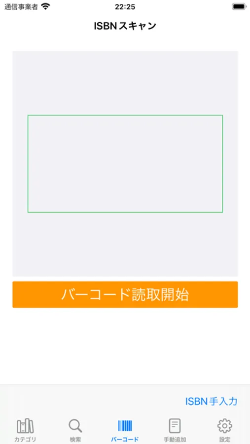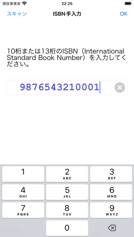 (5)書籍にカバーがかかっておらずバーコードがない場合は「ISBN手入力」ボタンをタップして、書籍の奥付に記載されているISBNを入力し「OK」ボタンをタップします。