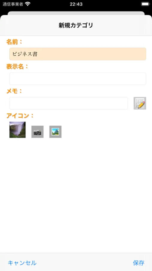 (2)カテゴリ名等を入力して保存ボタンをタップします。