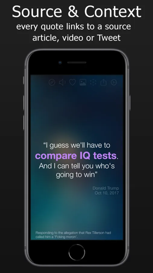 • Every quote has a link to it's source article, video or tweet