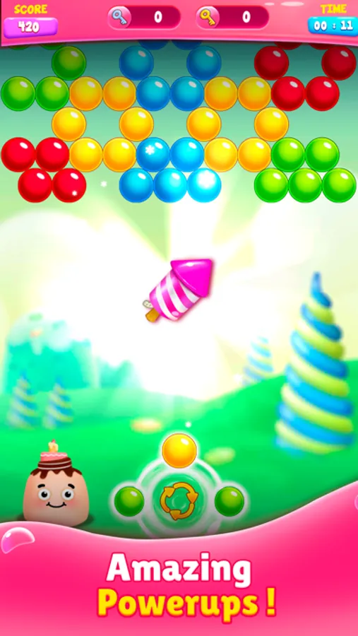 Candy Bubble Games brings to you a never-ending adventure with infinite bubbles and fun. Simply match three or more bubbles of similar color to burst bubbles and top the leader-board with higher and higher scores.