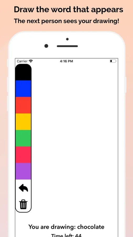 Leads to endless fun and hilarious drawing chains as people misinterpret the drawings! Easy to create games and join your friend's games! See your drawing chain and theirs at the end of the game!
