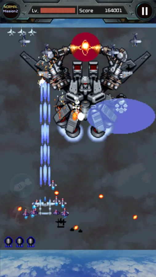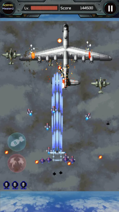 Touch the ""bomb"" button: blocks the enemy’s bullets for a certain amount of time by calling for backup.