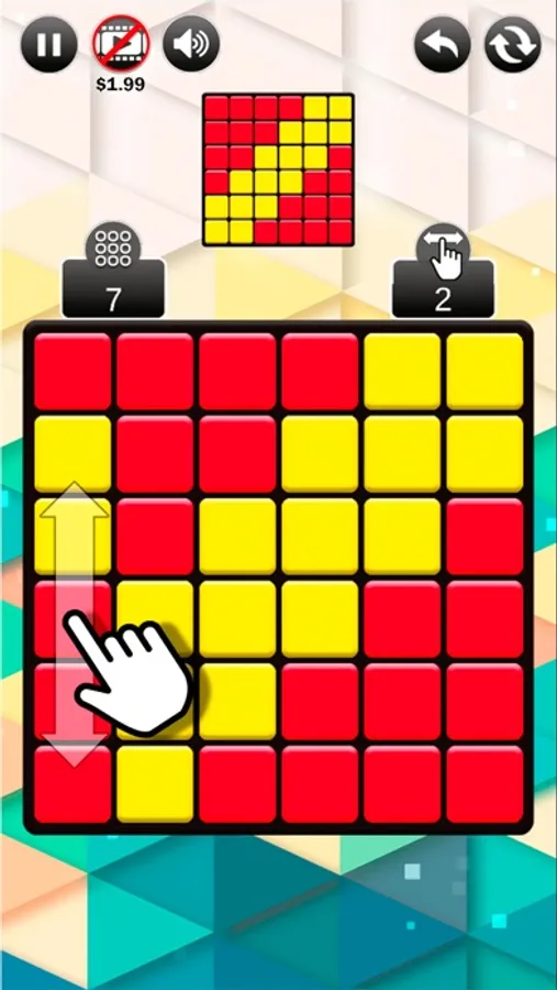 Move block rows and columns, (vertically and horizontally), to match the given pattern.