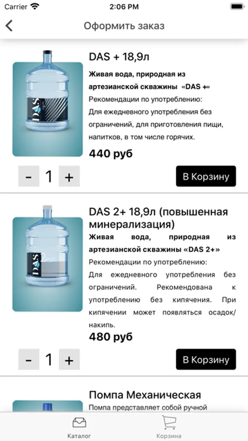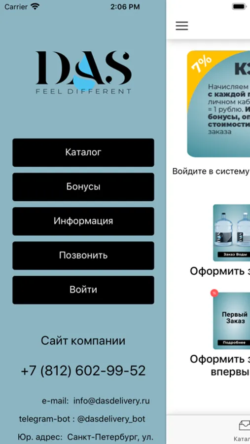 Приложение для заказа воды в Санкт-Петербурге в компании Das Delivery.