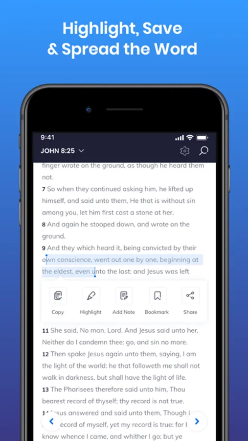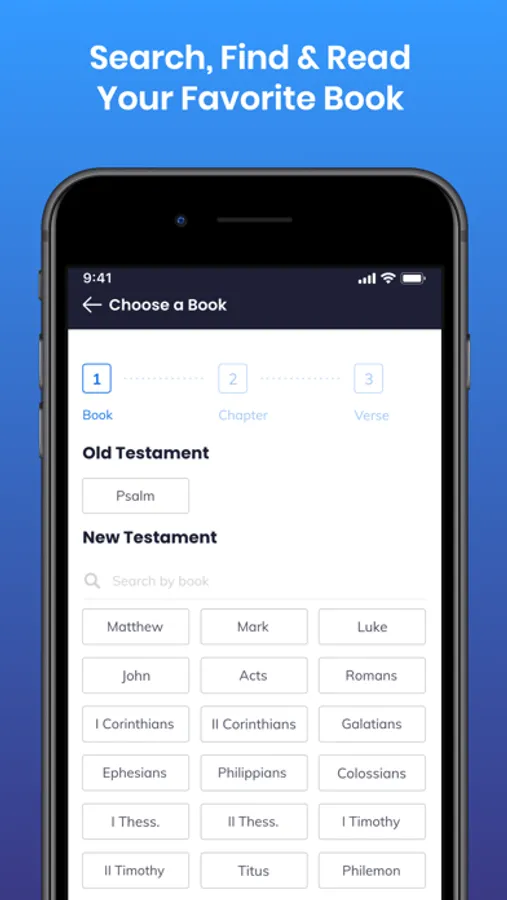 The app contains the full New Testament text and Psalms.