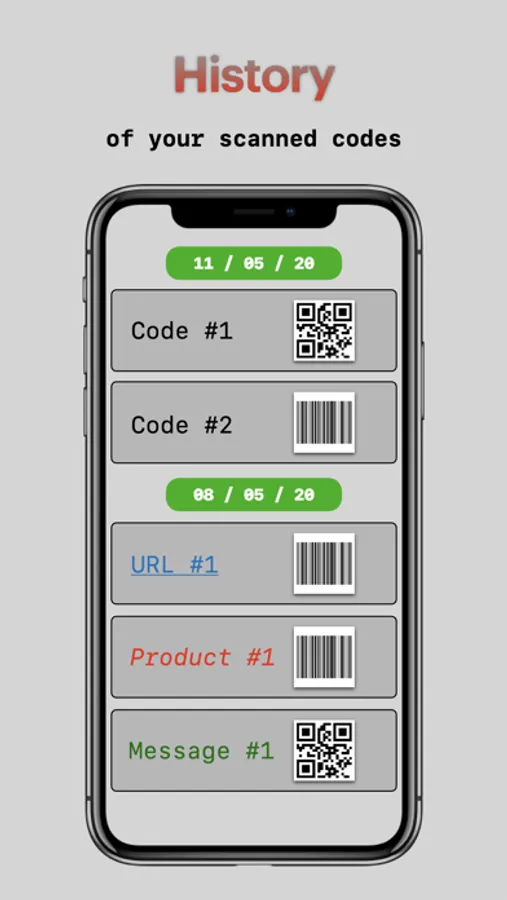 While scanning and reading many barcodes and QR codes, you can find your previously scanned codes within the app.
