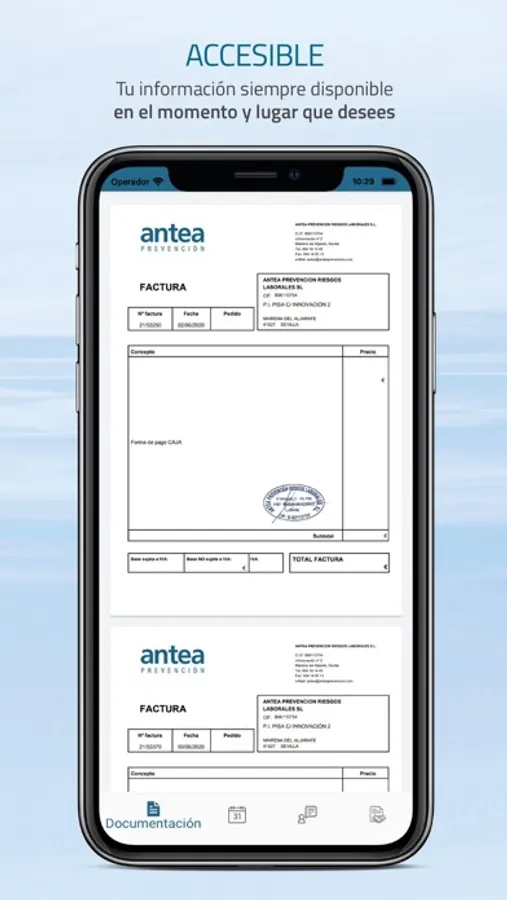 Todos los datos quedan almacenados con la máxima seguridad y confidencialidad en la App Antea Empresa. Respaldados por una compañía fiable como Antea, con más de 100 sedes y 70.000 clientes que confían a diario en nuestros servicios.