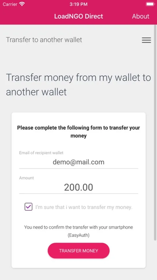 LoadNGO permet aux utilisateurs de charger et d'utiliser leur portefeuille virtuel afin d'effectuer des paiements en ligne sur les sites web des partenaires affiliés.