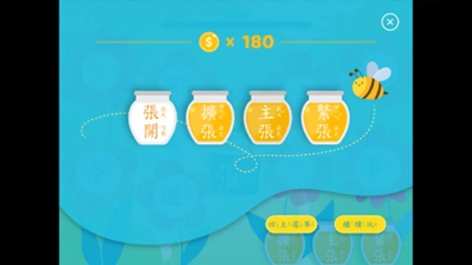 每次關卡結束後會給予回饋畫面,點選回饋畫面的字會播放其讀音,並有額外挑戰題增加趣味學習遊戲以及排行榜觀看成績排名。