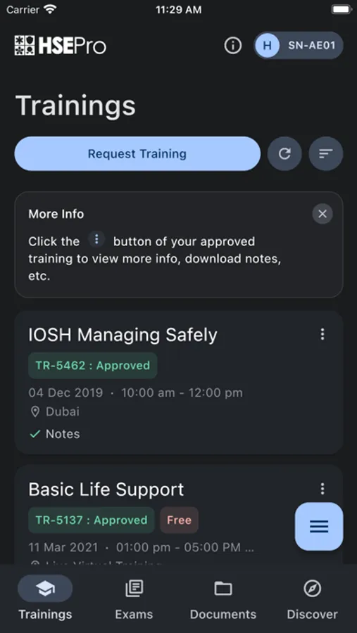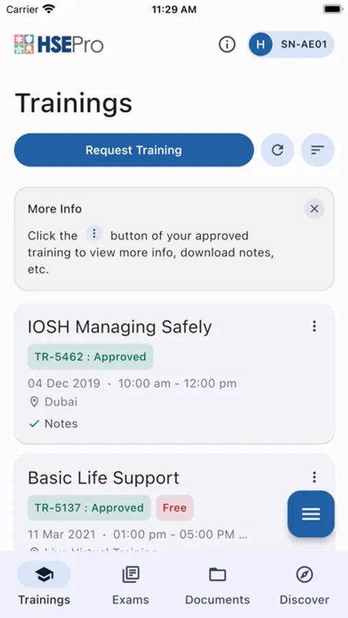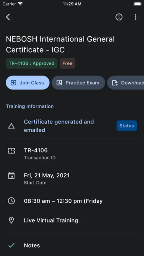- View details, download invoice, receipts and supplementary notes of your current training or exam