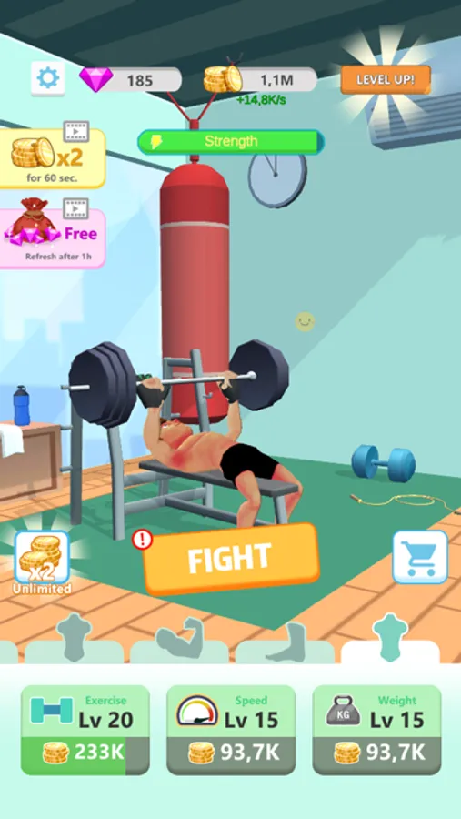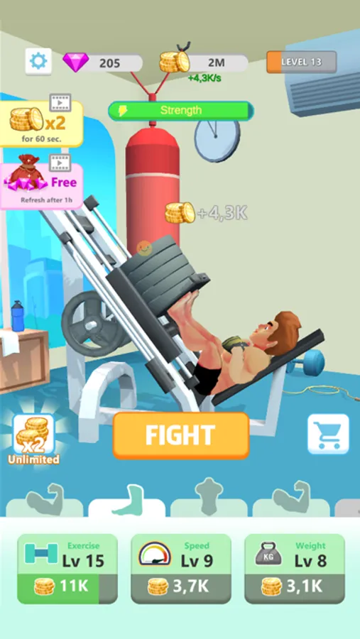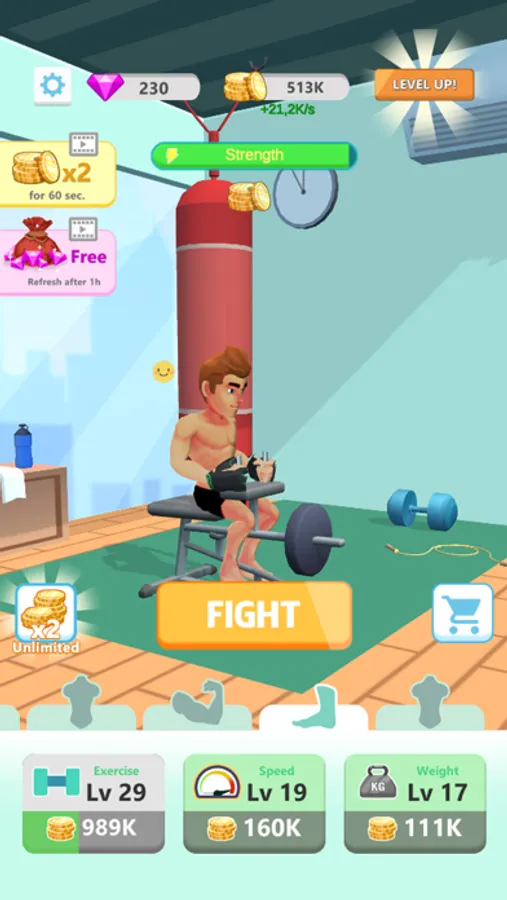 Create your perfect workout to shape nice body with multi choices of exercise machines. Get ready to build your dream body, push yourself and achieve your success. Let’s start with Muscle Tycoon.
