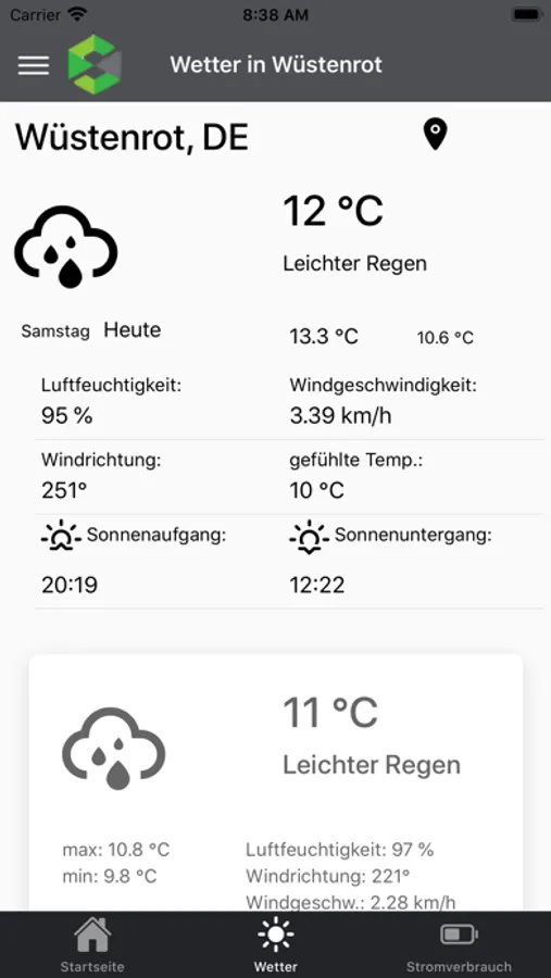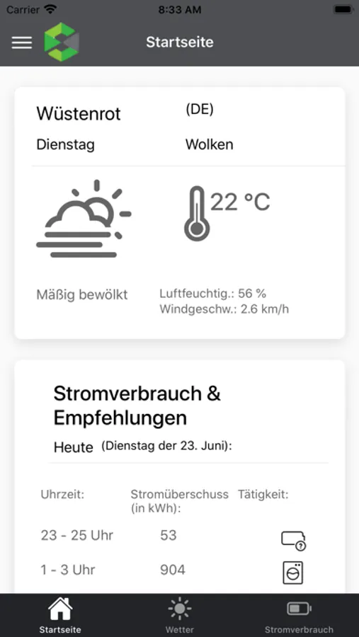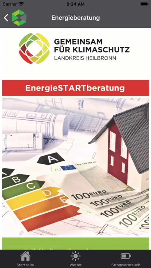 Zudem bietet die App noch weitere Features an, wie zum Beispiel einen Wetterdienst oder eine Übersicht der EnergieStartBeratung. Der Wetterdienst zeigt die aktuellen Wetterdaten, sowie eine drei Tage Vorhersage an. Naben Wüstenrot können noch weitere Orte hinzugefügt werden oder das Wetter vom aktuellen Standort abgefragt werden.