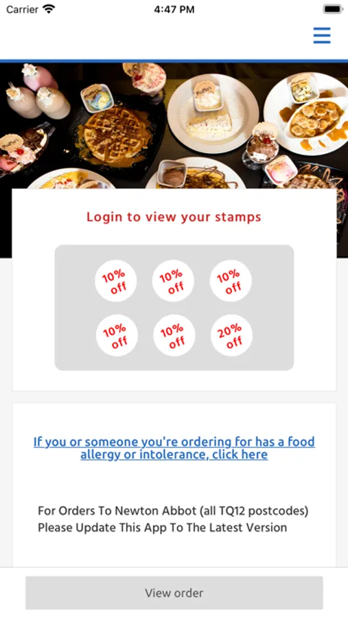 Once downloaded it will enable you to order food from our extensive menu.