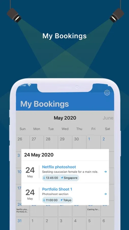 With StarAgent talent agency app, talents like you will have real-time updates on shoot schedules, castings, and bookings. You can see where the next shoot or event is, view its locations, and stay updated with all the information you need for your upcoming assignments and call times.