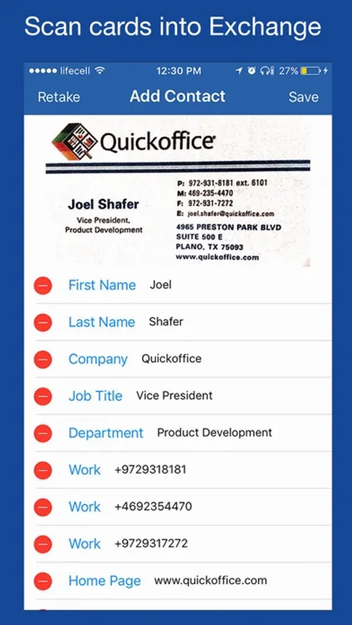 * BUSINESS CARD SCANNER converts cards directly into Outlook contacts