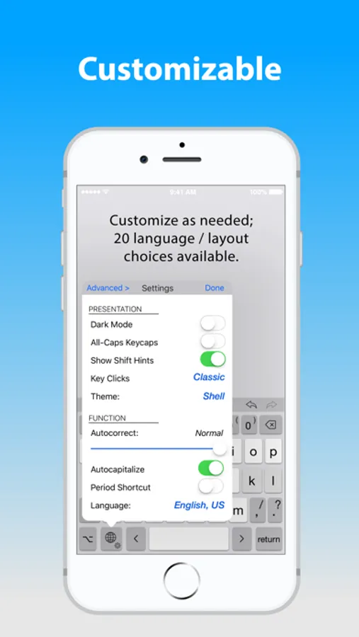 • Privacy friendly (“full access” is NOT required for most functionality, including autocorrect).