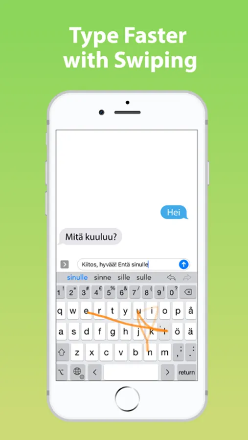 • Swipe input (trace words with your finger), and flick up on number and punctuation keys for shifted versions.