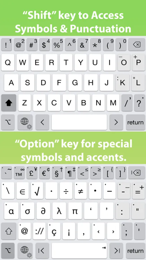 • Option switch for typing other symbols and accented characters.