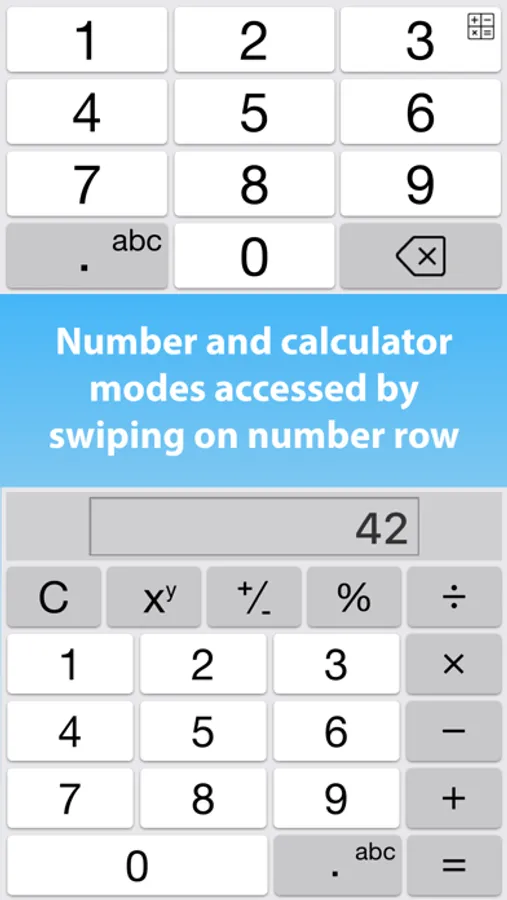 • Numeric and calculator modes.