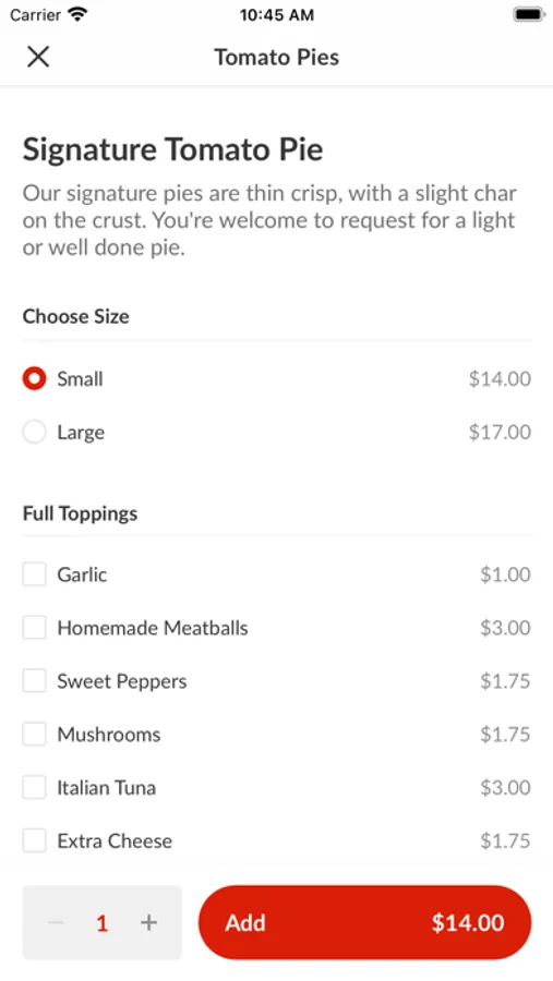 With the Delorenzo's Tomato Pies mobile app, ordering food has never been easier. Whether you're looking for a quick snack or a full meal, we've got you covered. Just browse our easy-to-use menu, customize it how you'd like, place your order using our secure payment system, and sit back! A push notification will alert you when your order will be ready.