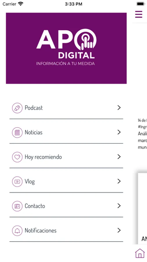 APO Digital es la red de información de Ana Paula Ordorica en donde puedes encontrar la información más importante de México y el mundo en formato Podcast, Video, Opiniones y Noticas escritas. Todo con el sello y prestigio de la periodista Ana Paula Ordorica. También podrás ponerte en contacto con su equipo editorial.