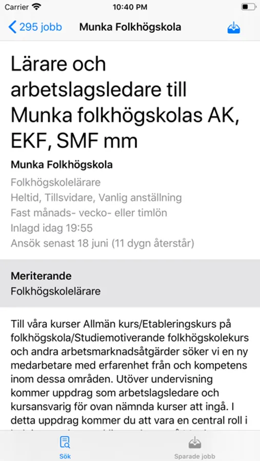 * Ansök jobbet direkt i appen