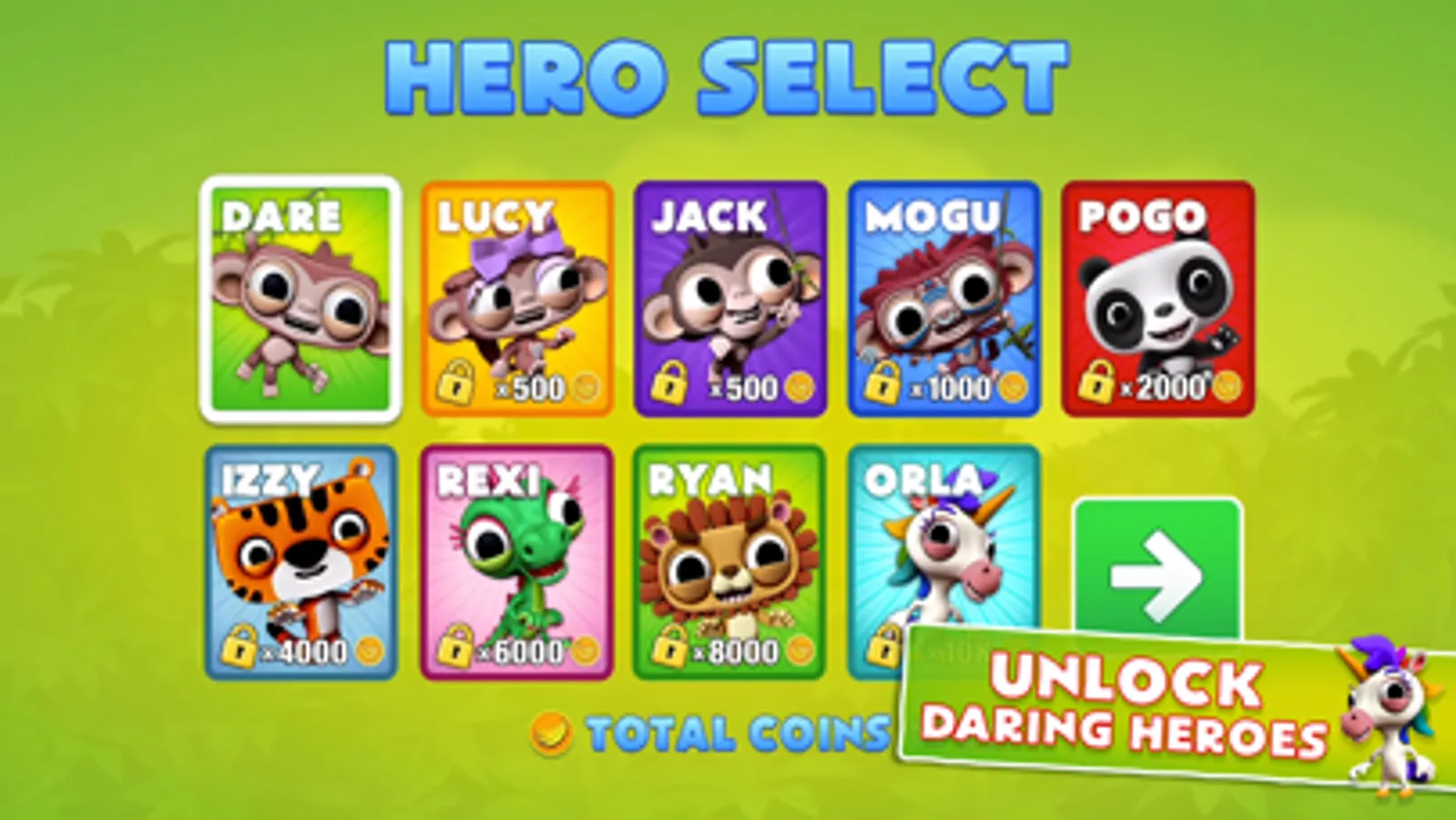 • Collect coins to unlock new heroes