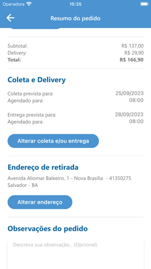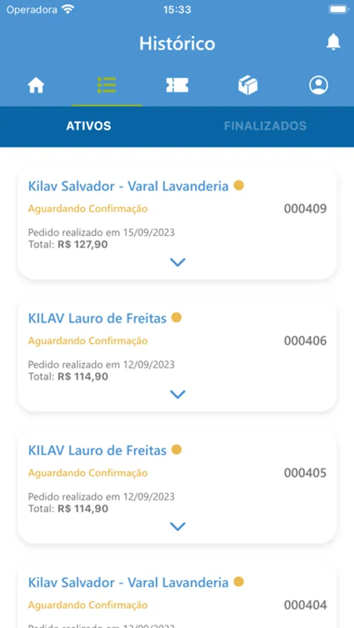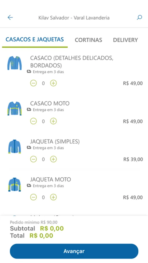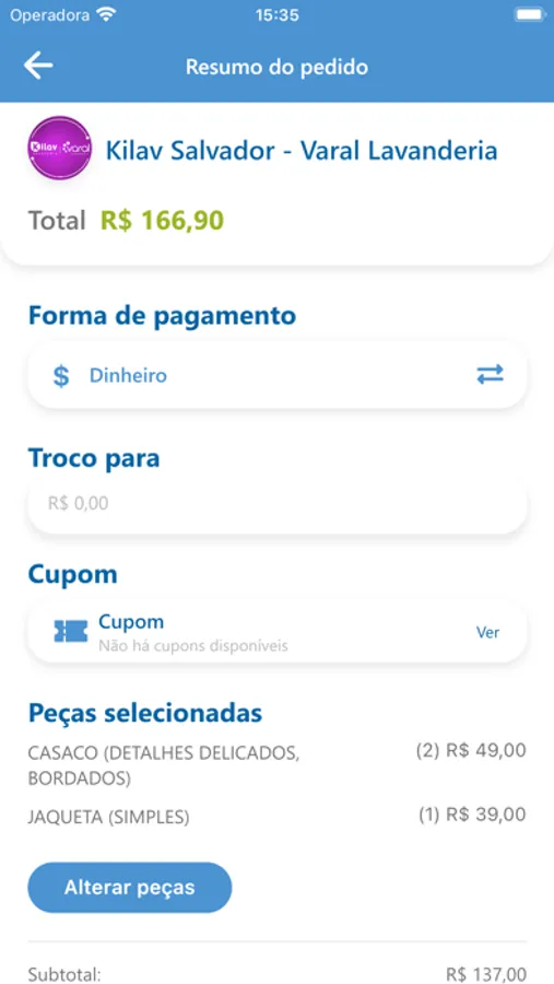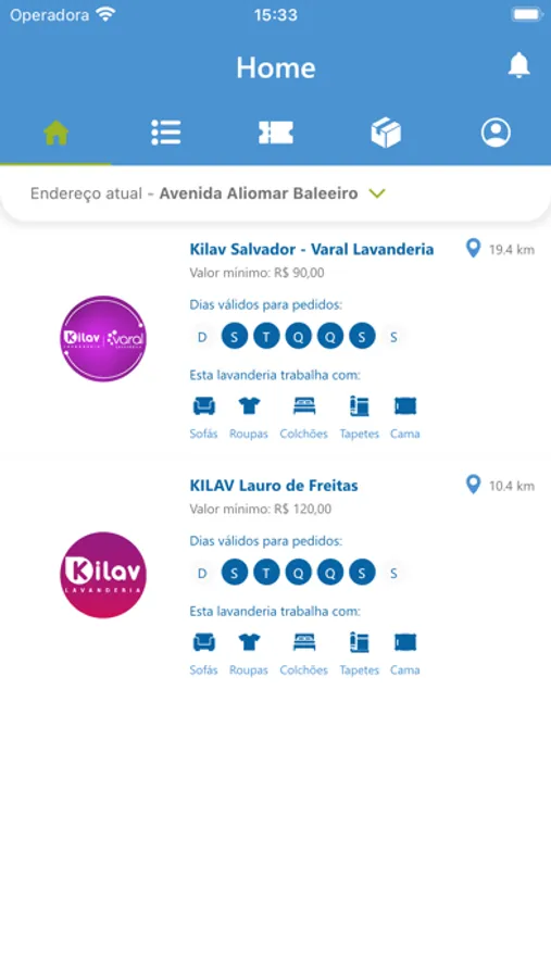 Aplicativo para solicitar lavagem de roupas, objetos e tapetes em umas das lojas da rede Kilav.