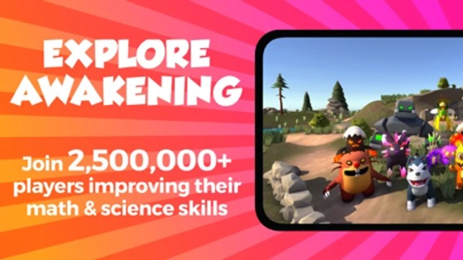 - Explore and learn in the immersive world of Awakening while leveling up math/science skills: