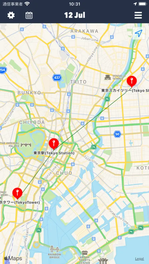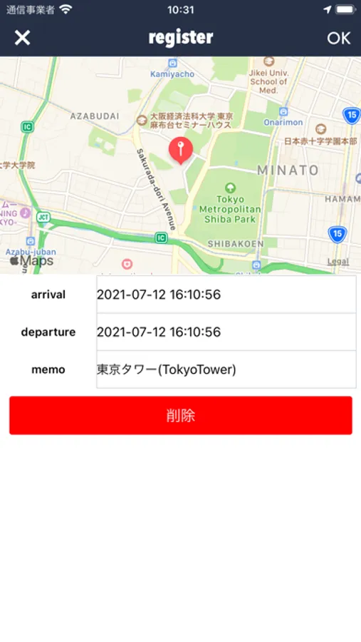 To manually record your place of stay, press and hold on the map to switch to the input screen.