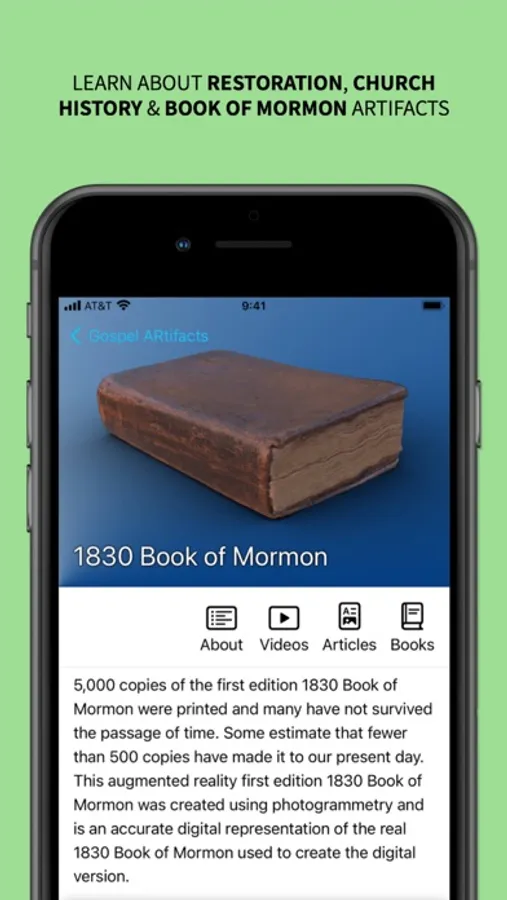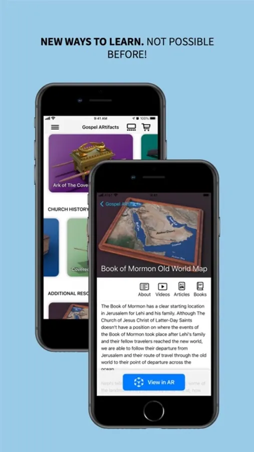 See objects in AR that are related to the Old Testament, New Testament, Joseph Smith and the restoration of the gospel, the Book of Mormon, Church History, Study Maps, and Ancient American artifacts.