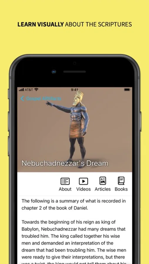 Gospel ARtifacts is a cutting edge gospel learning app that allows you to place objects from the scriptures on real life surfaces in Augmented Reality. Walk around and examine these “ARtifacts” to learn in a more tangible way. It feels like having the real thing right in front of you. Bring your Come, Follow Me or personal scripture study to life with AR!