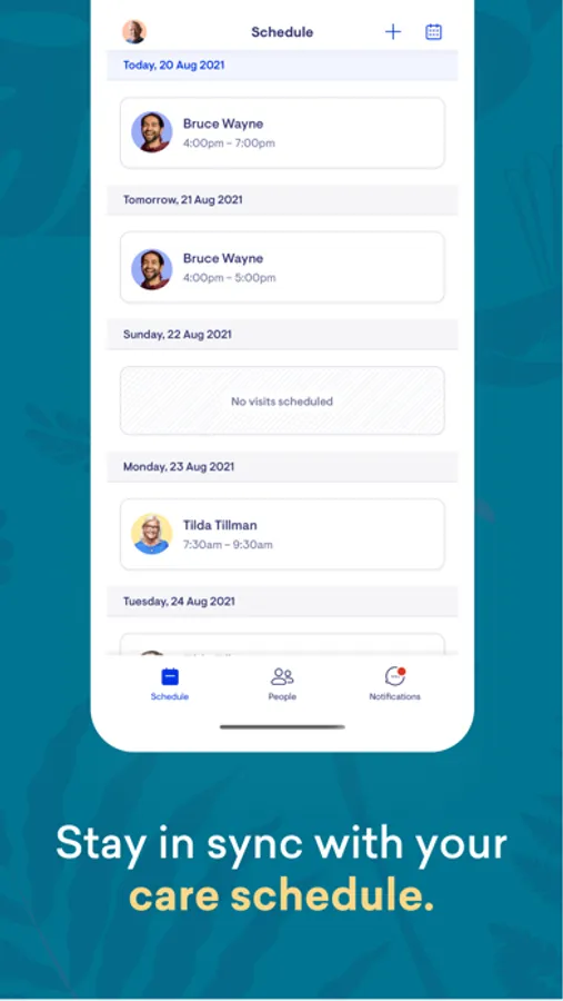 - Know who is coming and when. Know when visits are scheduled, stay up to date, and plan your day with ease.