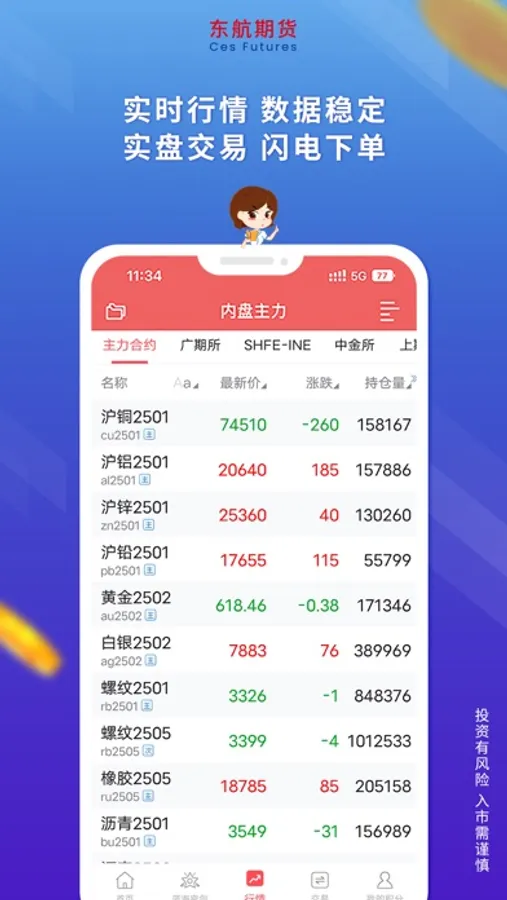 东航期货APP由东航期货自主开发,专注为期货投资者提供期货开户、期货行情、期货交易、交易问诊、在线客服等一系列综合金融服务。