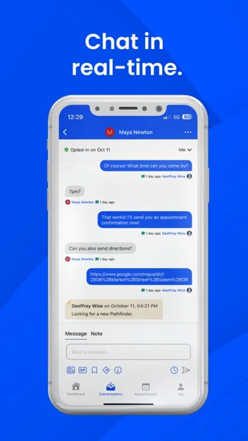 - Have real-time chats with customers via SMS and Facebook Messenger