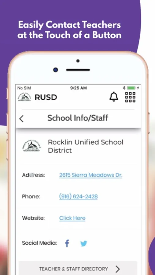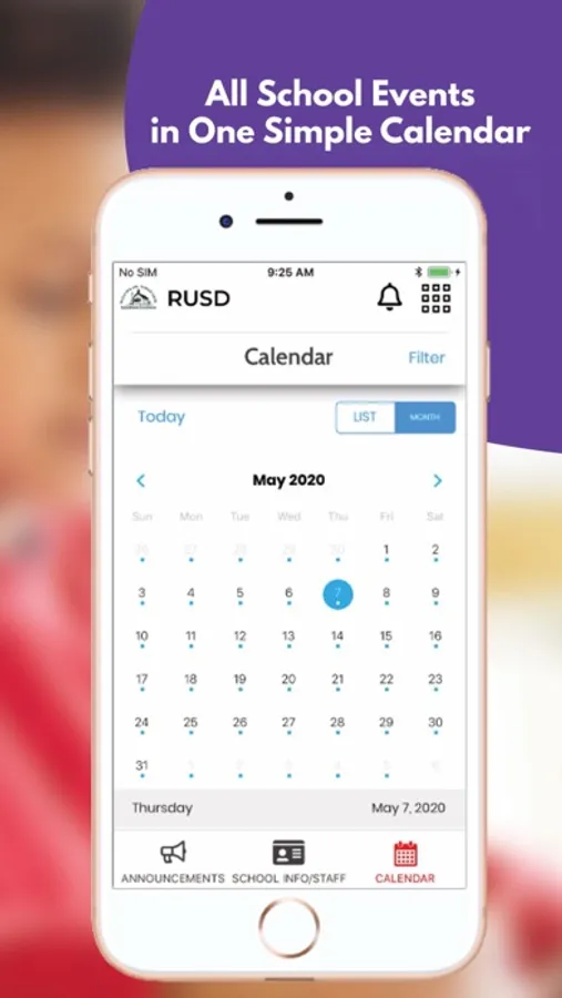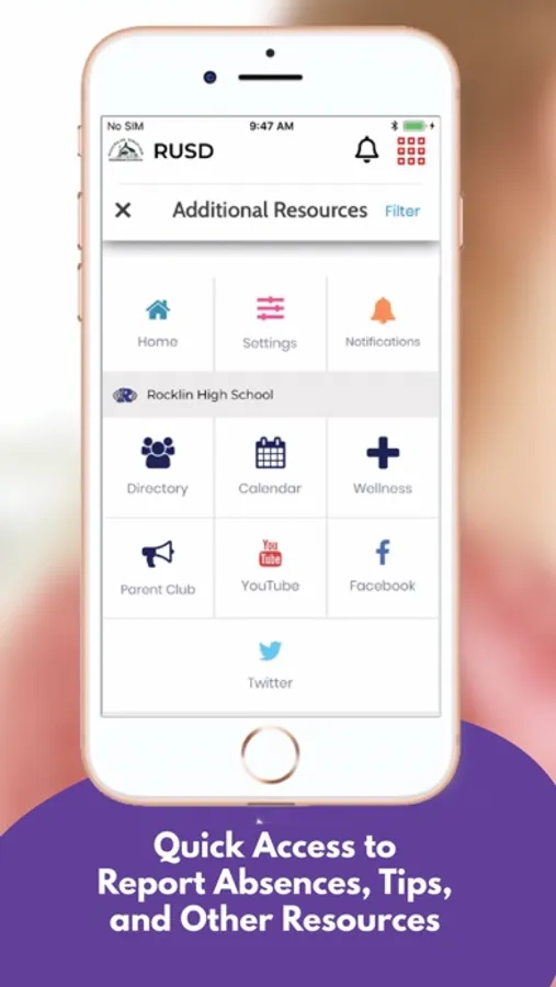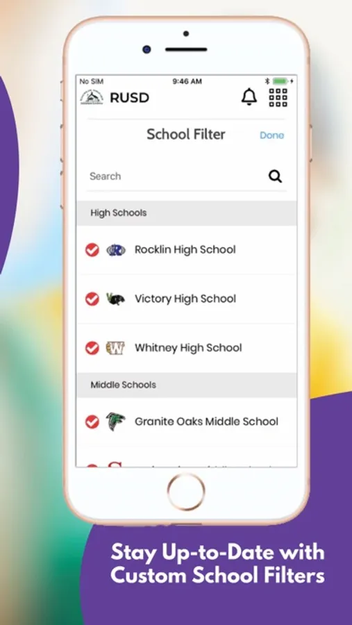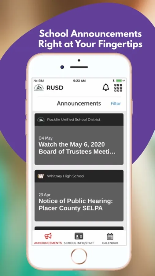 The app includes information for the district and all schools. Filter by the school your child attends to feature information for that school.